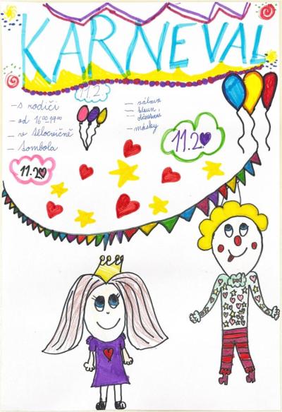 Srdečně vás zveme na školní dětský karneval, který se koná ve středu 11. 2. od 16:00 v nové tělocvičně. Čekají na vás klauni, hodně zábavy, tombola, občerstvení a hlavně společný čas, který si určitě všichni užijeme. :-) Těšíme se na vás!