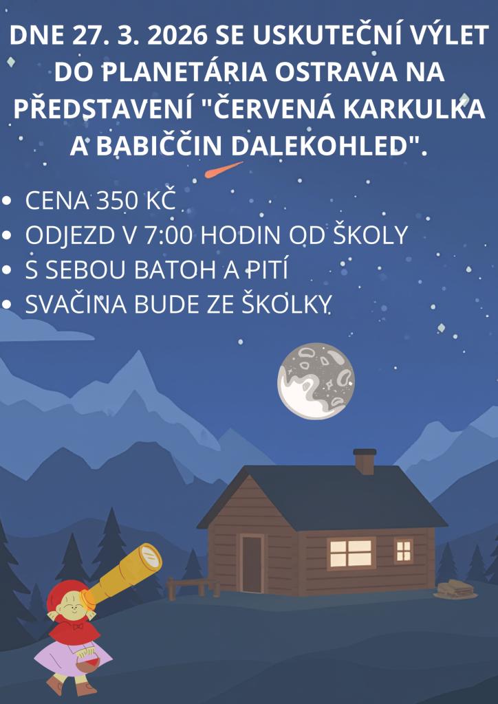 27. 3. 2026 se vydáme na poznávací výlet do ostravského planetária na představení "ČERVENÁ KARKULKA