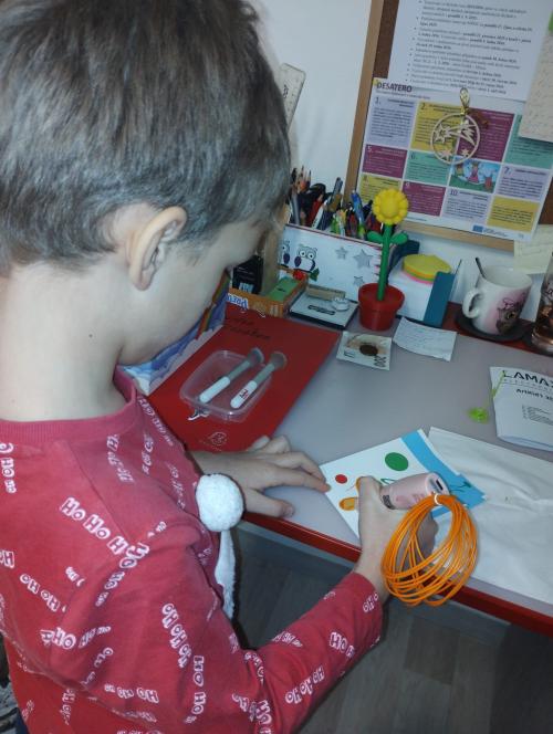Předškoláci si vyzkoušeli práci s 3D perem, které našli pod stromečkem a s nadšením vytvářeli své první barevné výrobky. Tvoření je moc bavilo a s radostí objevovali nové možnosti této kreativní a netradiční pomůcky.