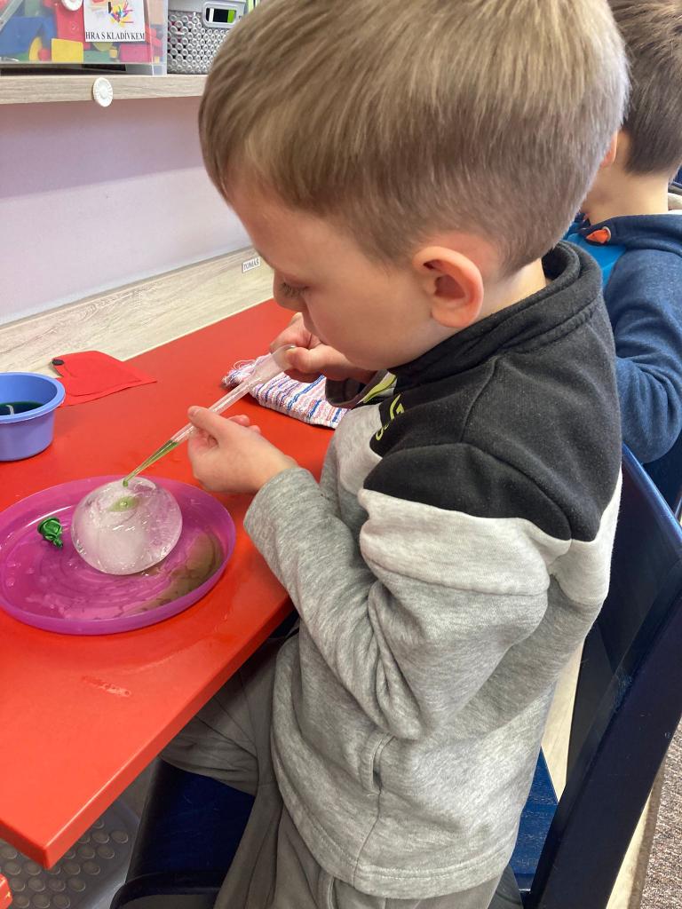 Předškoláčci si v lednu odskočili za polárními zvířaty a vyzkoušely si na vlastní kůži, co vše se dá s ledem dělat a že je opravdu ledový.