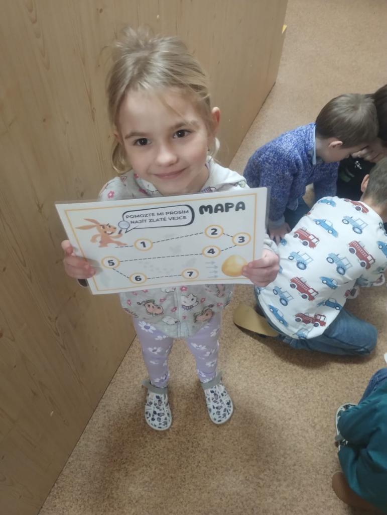 Každý nalezený kousek příběhu je posouval blíž k tomu, aby zjistily, co se vlastně stalo a kam se zlaté vajíčko podělo. Nešlo jen o hledání vajíčka — děti si procvičily spolupráci, pozornost, logické myšlení i radost z týmového úspěchu. A když nakonec rozluštily poslední indicii, čekalo je velké odhalení a ještě větší nadšení.