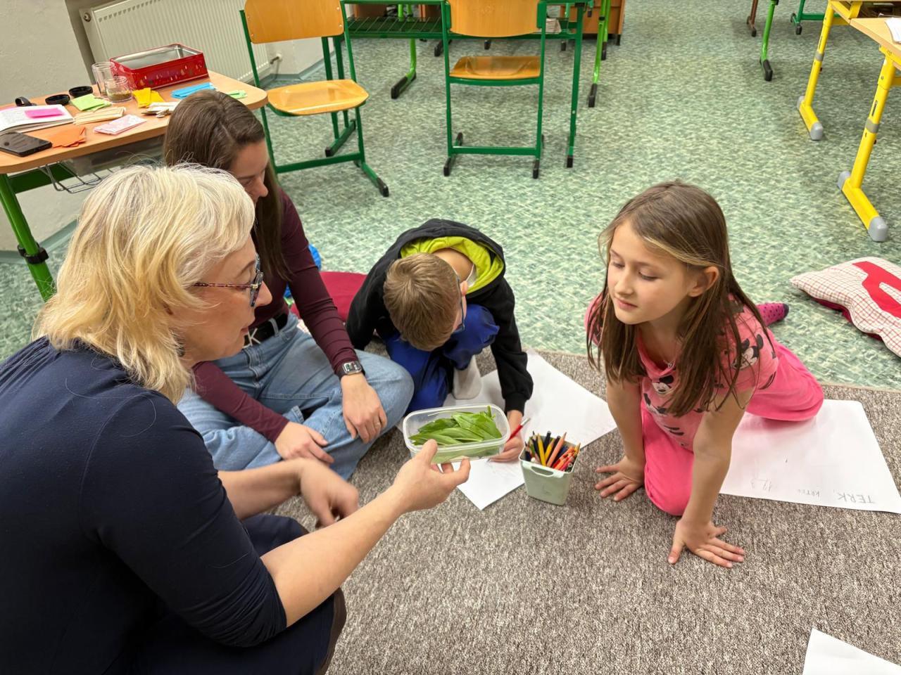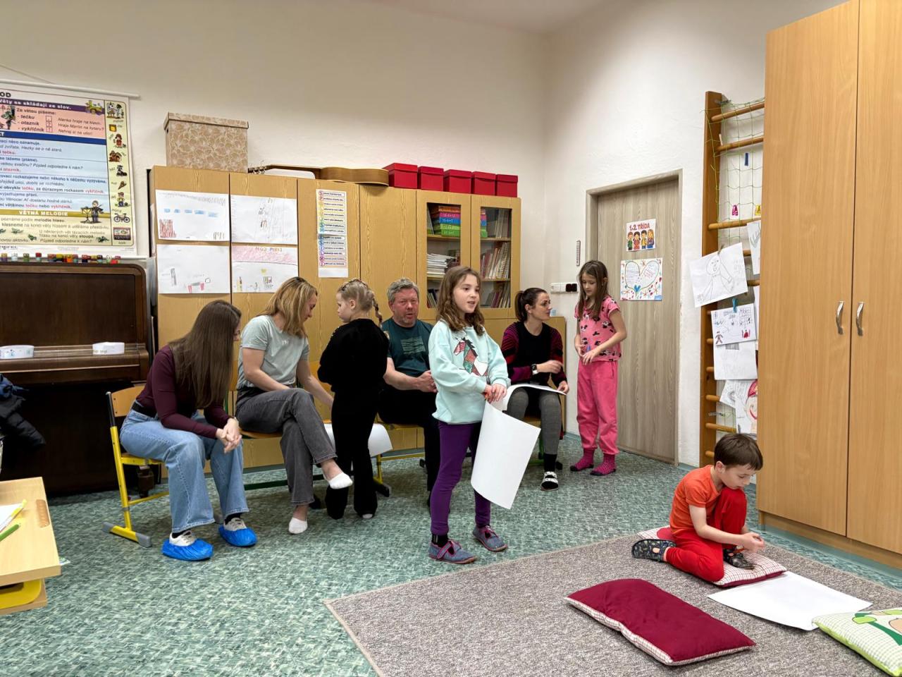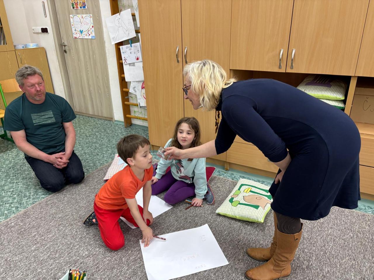 Odkud se bere sníh. Tento milý příbeh doprovázený krásnými ilustracemi si pro nás na úterní odpoledne připravila Kateřina Slowiková Gocieková. Představuje rodinu krtků, přibližuje společné soužití jedné velké rodinky, její zvyky i tradice.Približuje nám hlavní hrdiny s jejich silnými i slabými stránkami. Citlivě vykresluje, jak důležité je respektovat jeden druhého navzájem a také význam vzájemné spolupráce.Což si rodiče s dětmi mohli také společně vyzkoušet a kromě paměti jsme zkoušeli otestovat také náš čich i vzájemnou komunikaci (i argumentace☺️). Společný čtenářský podvečer určitě nebyl náš poslední.