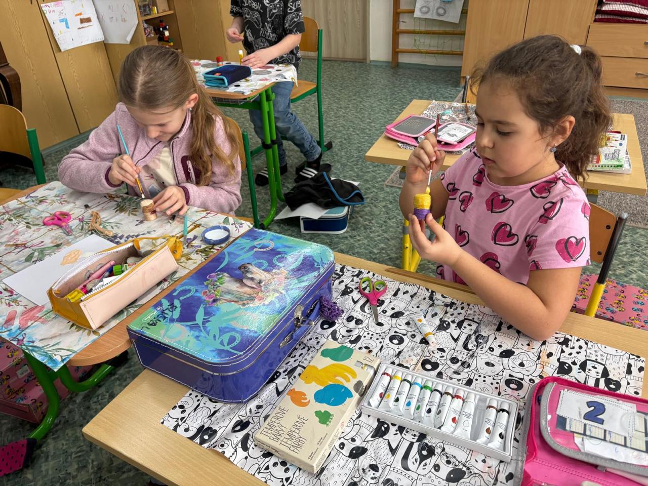 V pracovních činnostech si děti z první, druhé a třetí třídy vytvořily panáčky do hry. Jaká hra zvítězí ještě uvidíme. Můžete prozatím tipovat. Bude to obří Člověče, nezlob se! nebo putovní hra s úkoly? To se dozvíte příště.