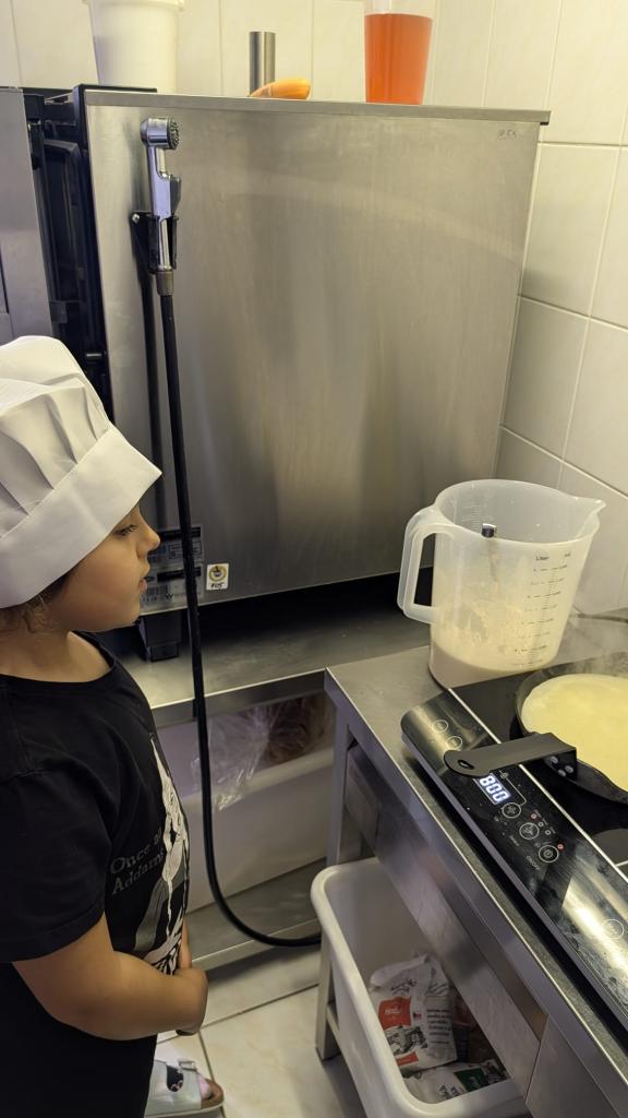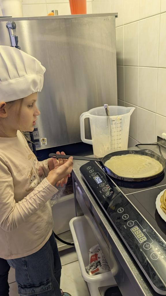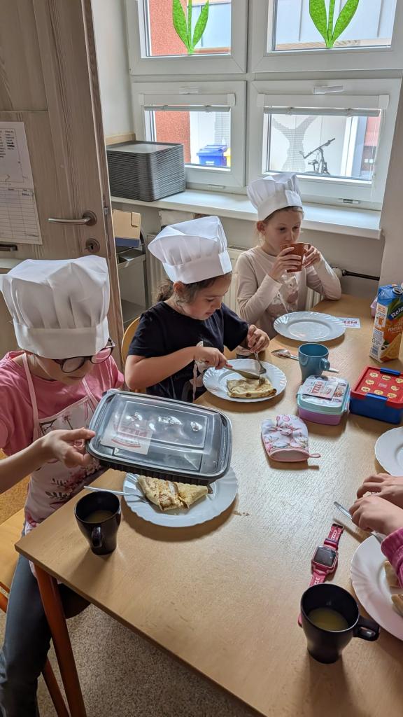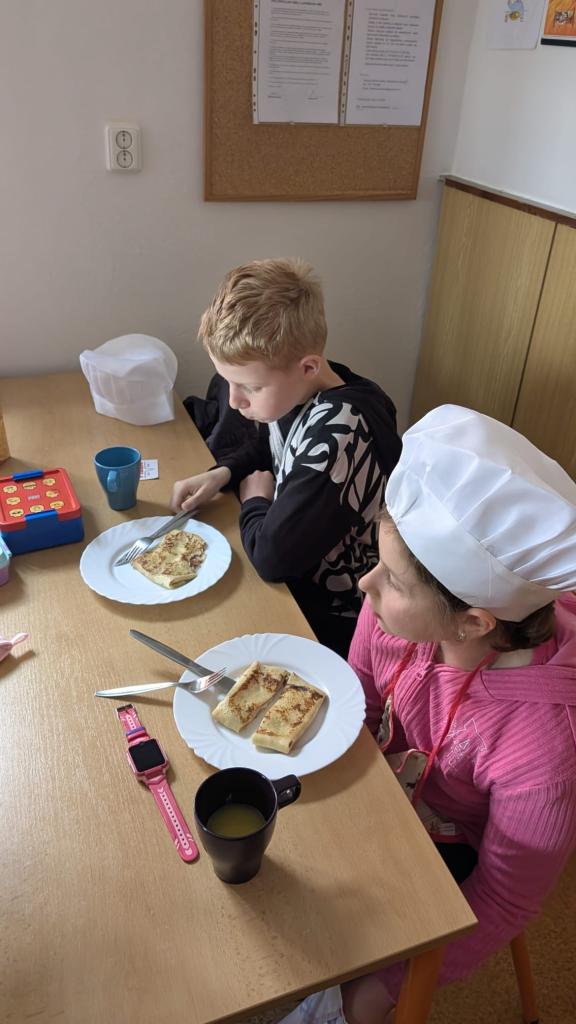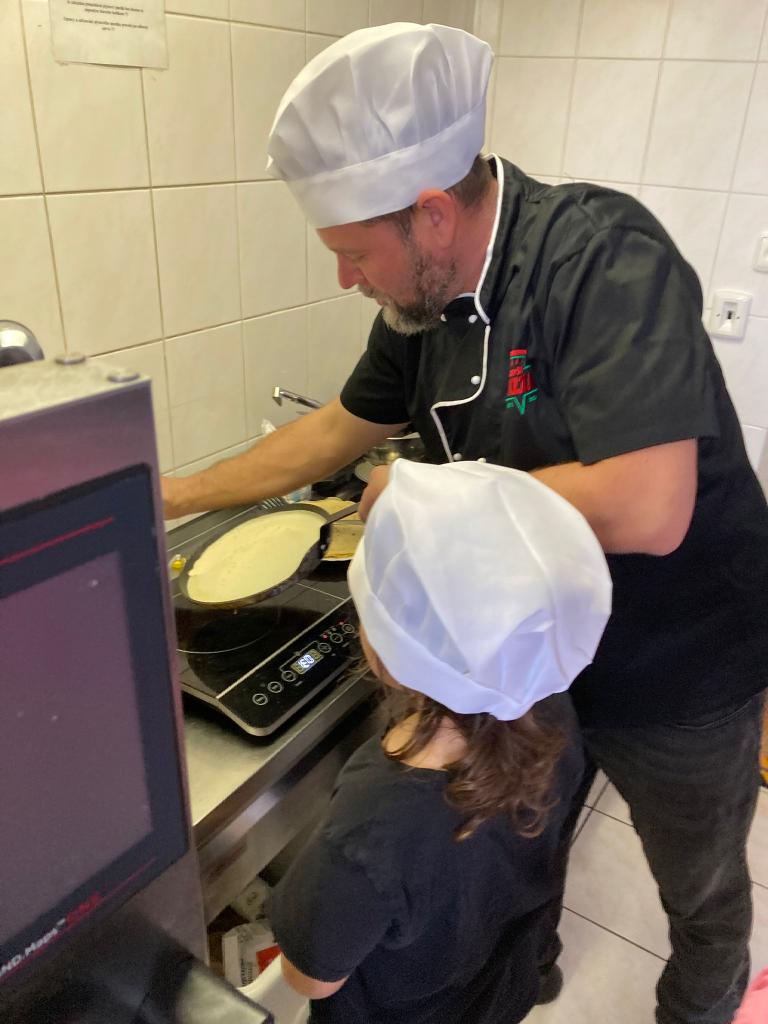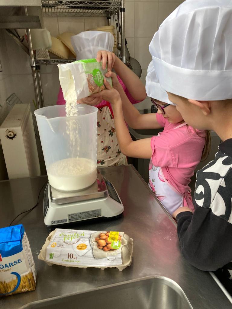 Druhá lekce byla plná vůní a akce! Děti se naučily připravit dokonalé těsto, správně vážit suroviny a filetovat ovoce. Největším zážitkem bylo obracení palačinek ve vzduchu, které si každý vyzkoušel.