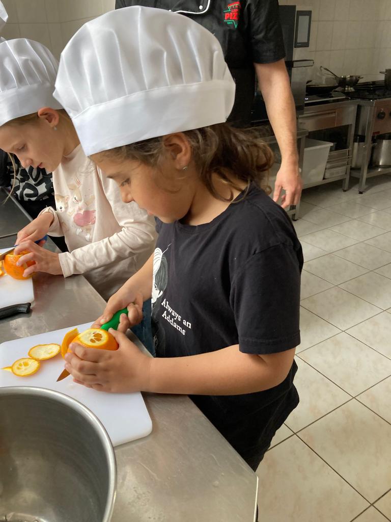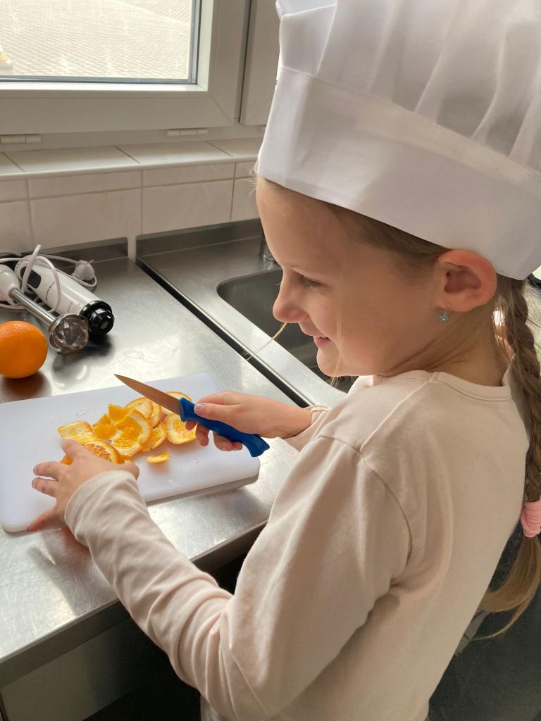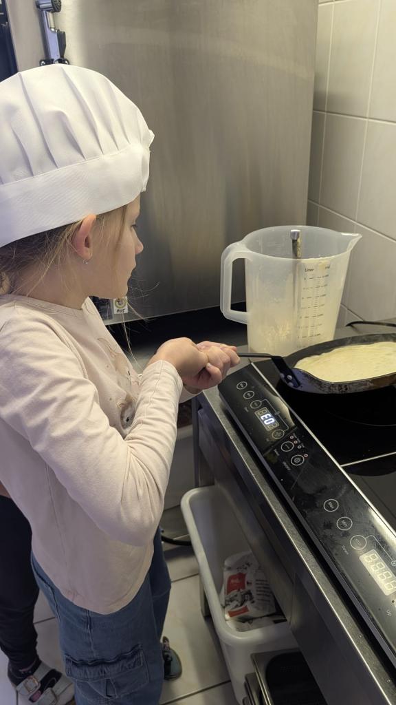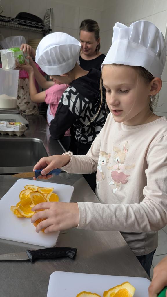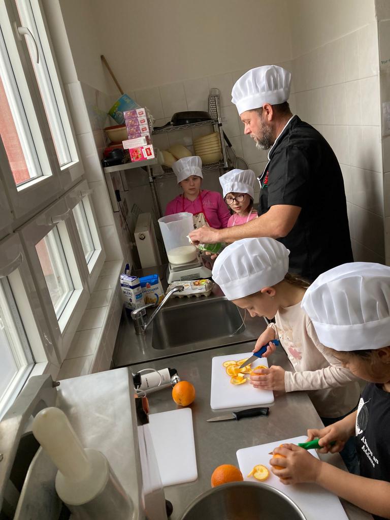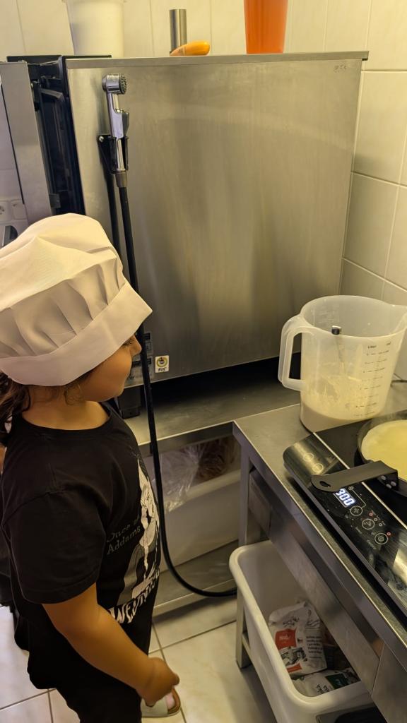 Druhá lekce byla plná vůní a akce! Děti se naučily připravit dokonalé těsto, správně vážit suroviny a filetovat ovoce. Největším zážitkem bylo obracení palačinek ve vzduchu, které si každý vyzkoušel.