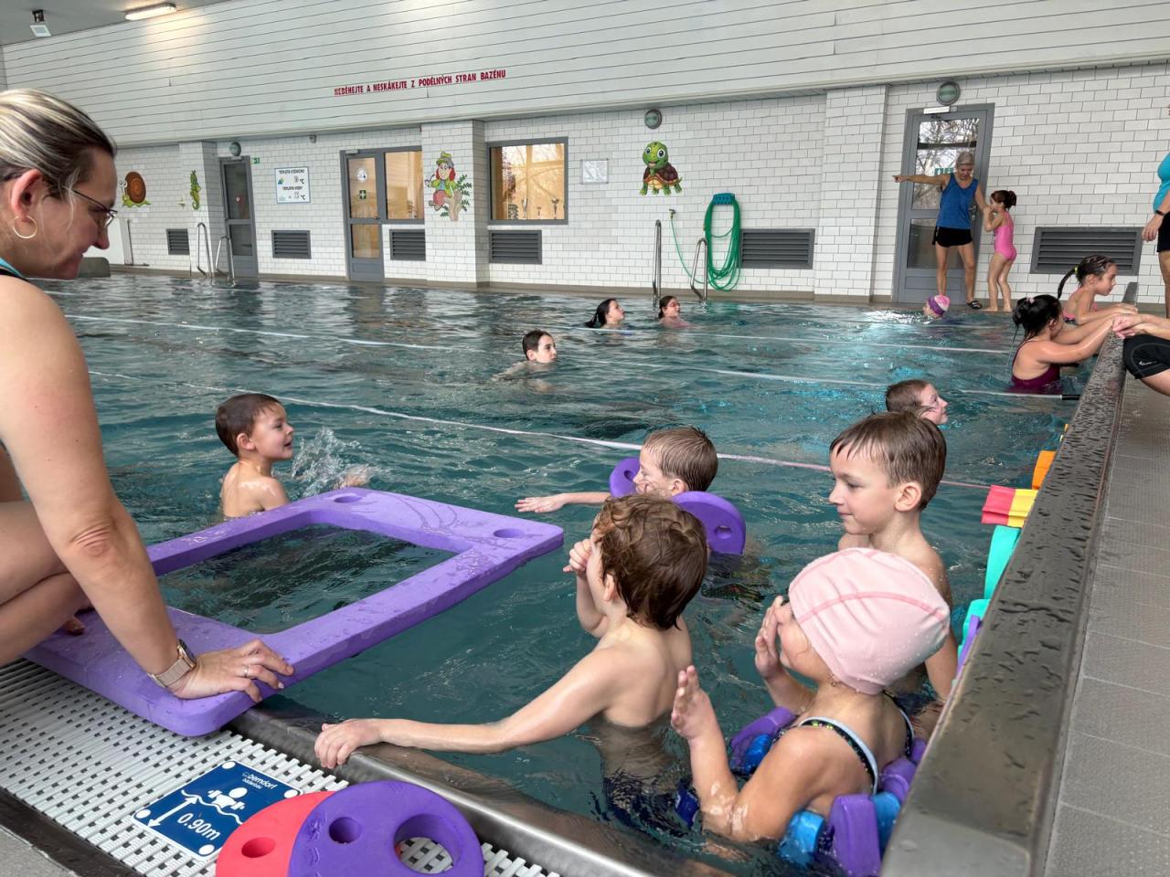 Dnes našim dětem začalo první plavní. Děti se těšily i obávaly, ale nakonec s radostí skočily do bazénu a plavaly. Všechny děti si to náramně užily, byly vzorné a těší se na další lekci.