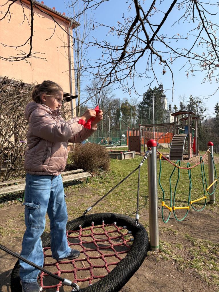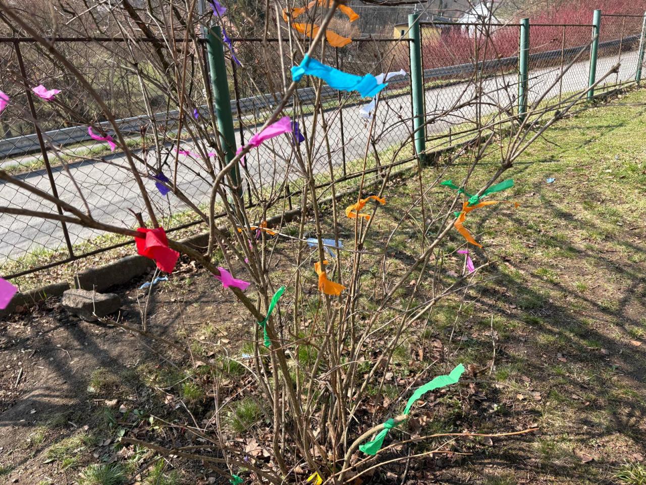 Dnes nás sluníčko vytáhlo v pracovních činnostech ven. Děti z 1.-3. ročníku krásně nazdobily ještě spící keře krepovým papírem. Procvičily si vázání uzlíku a potrápily prstíky. Šlo jim to moc hezky a možná jste si všimli, že u nás ve škole už vše kvete. I uvnitř nám rozkvetly kytičky.:)